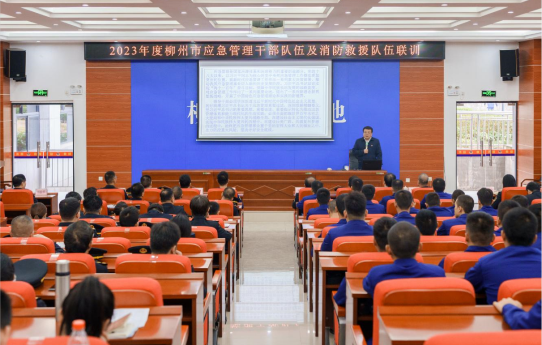 下面,让我们一起走进练兵现场,近距离感受柳州应急铁军的风采。 11月30日上午动员仪式后,市应急管理干部队伍和市消防救援队伍开展政治联训,邀请广西区委党校应急管理培训部洪长安副教授作题为“习近平总书记关于应急管理重要论述”的讲座,共150余人参加这场政治练兵。