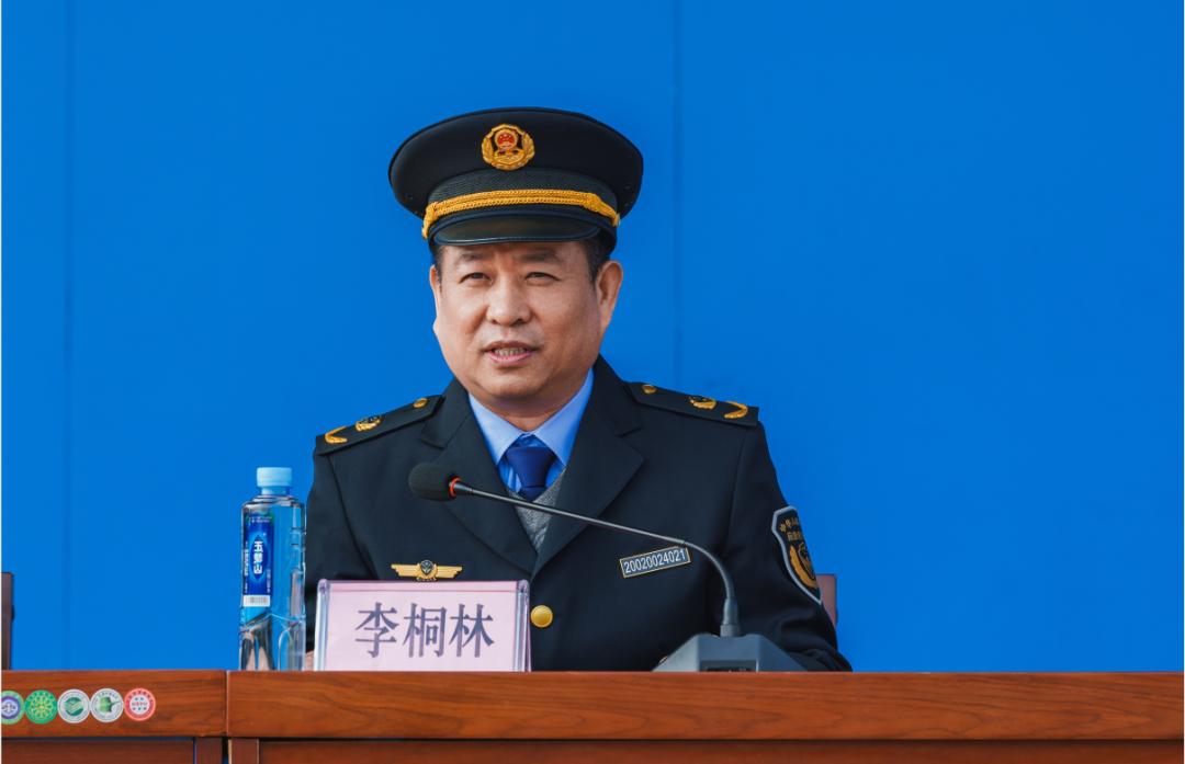 ▲市消防救援支队桂中大道特勤站政治指导员蔡安安在动员仪式上致辞
