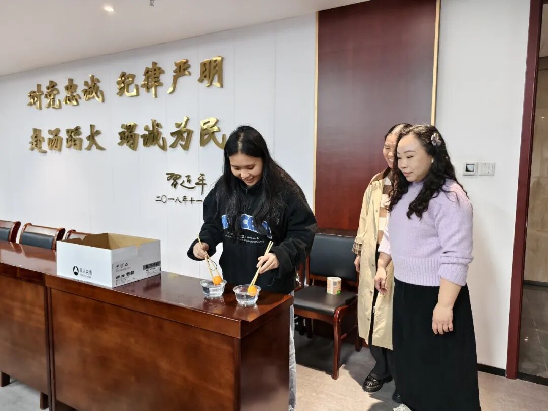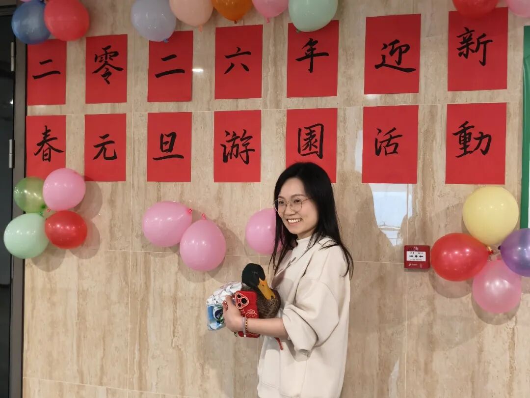 本次活动精心设置了8项趣味游园项目及2轮幸运抽奖环节,包括吹蜡烛、猜谜语、点鼻子、插筷子、百发百中、套活鸭、蒙眼原地踏步和“幸福欢乐送”等。各项游戏集趣味性、协作性与挑战性于一体,既考验参与者的专注力、协调性和反应能力,又在轻松氛围中促进交流、增进友谊。抽奖环节更为活动增添了仪式感和惊喜感,将整场游园活动的氛围推向高潮。