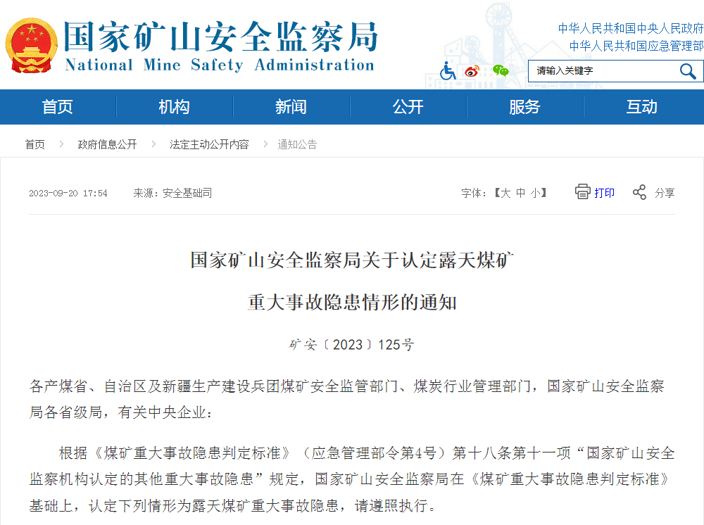 认定露天煤矿重大事故隐患情形的通知