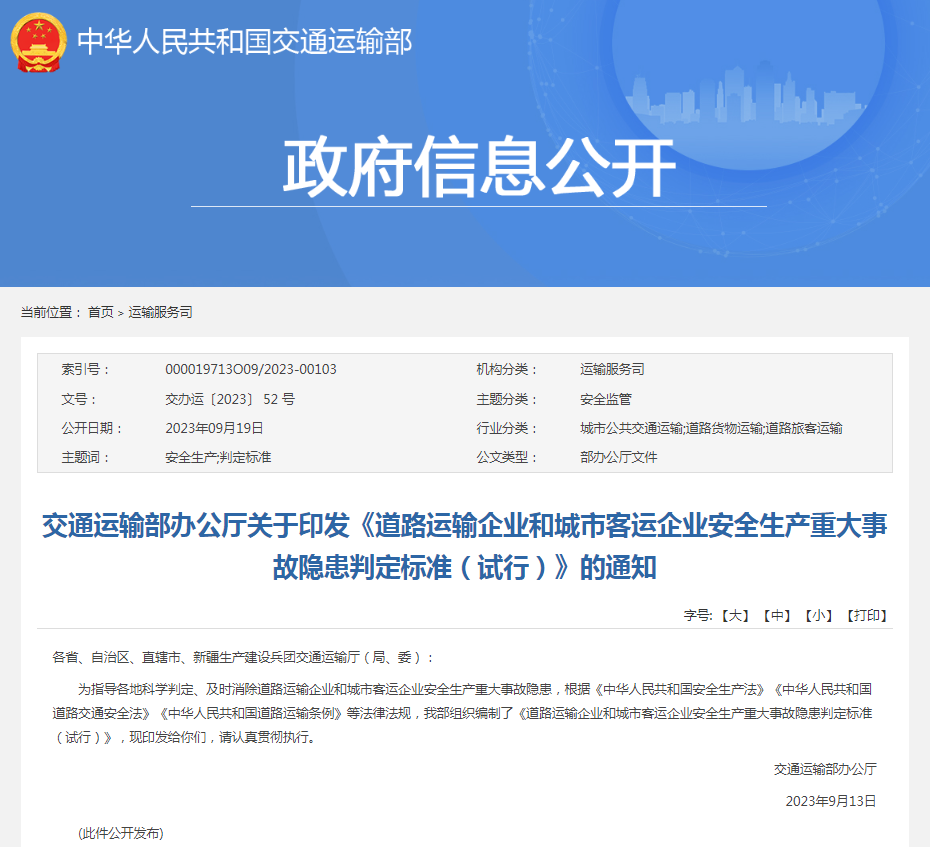 《道路运输企业和城市客运企业安全生产重大事故隐患判定标准(试行)》