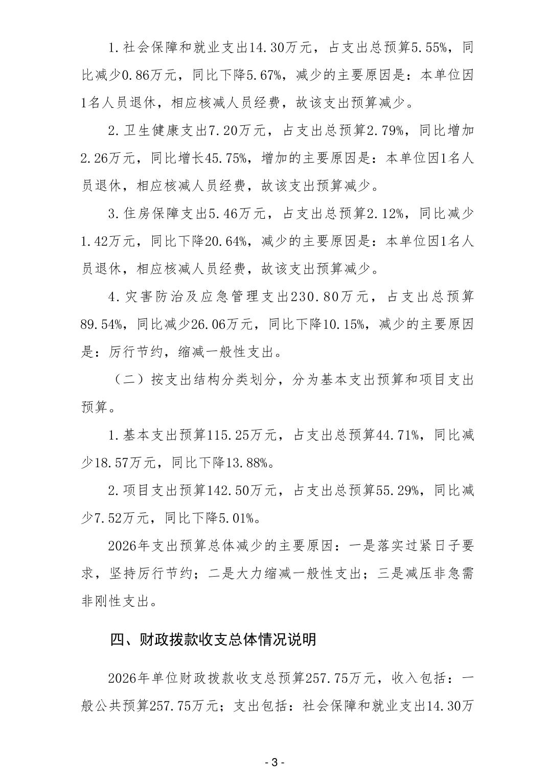 306006柳州市备灾中心2026年单位预算公开说明