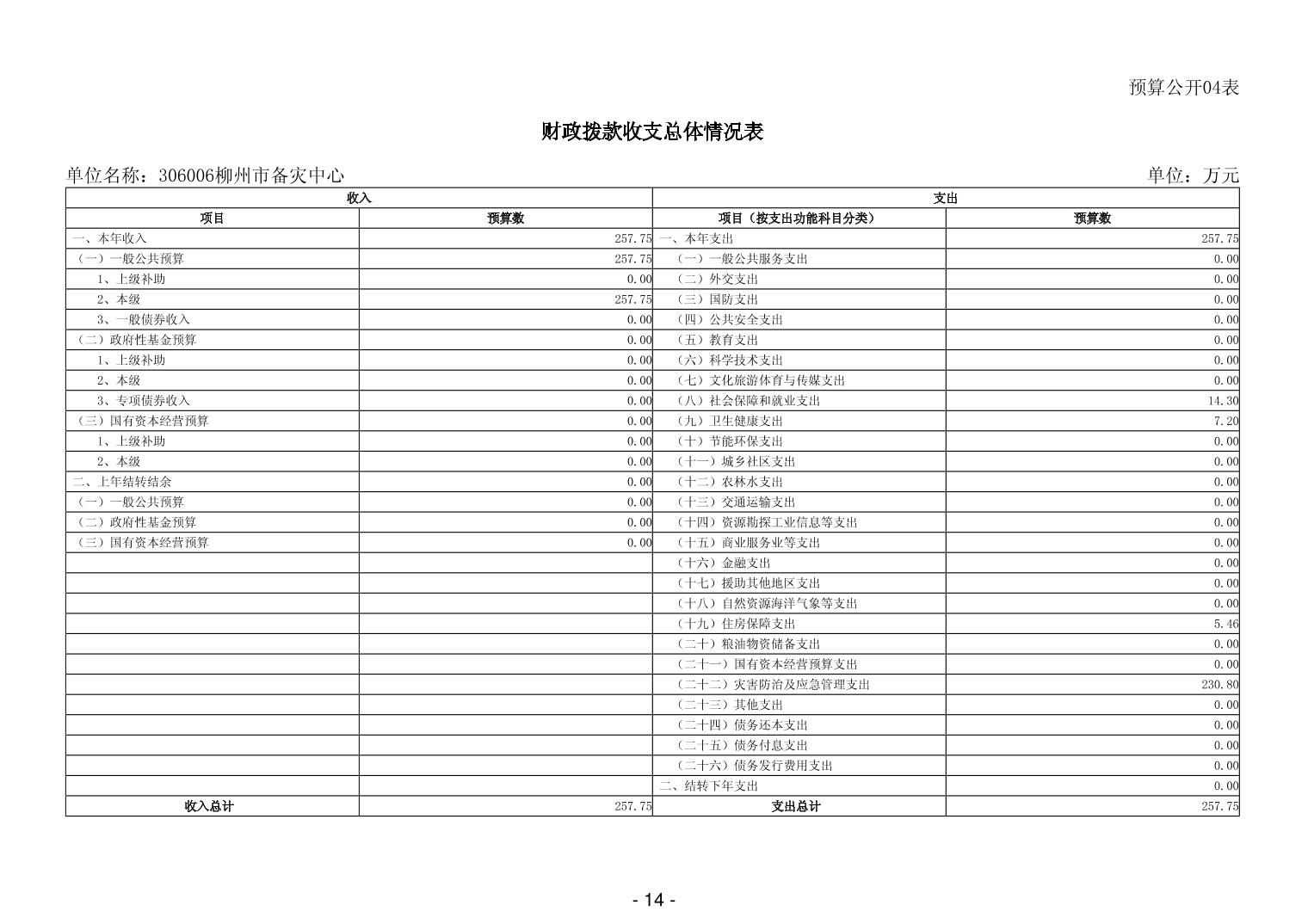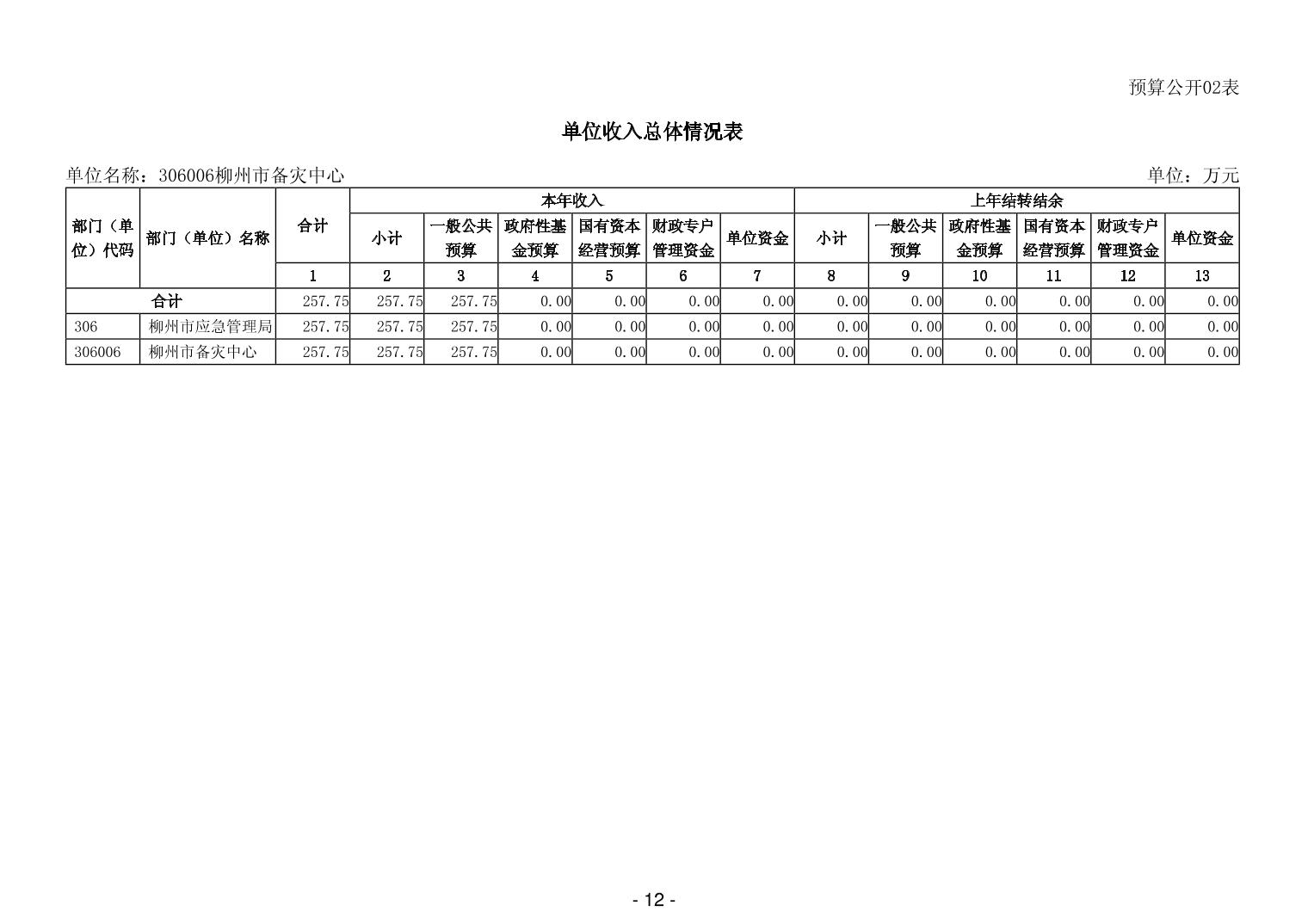306006柳州市备灾中心2026年单位预算公开表.xls