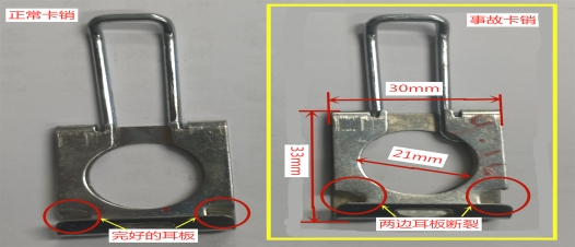 图3 涉事KBK柔性起重机连接件中固定销与卡销情况图